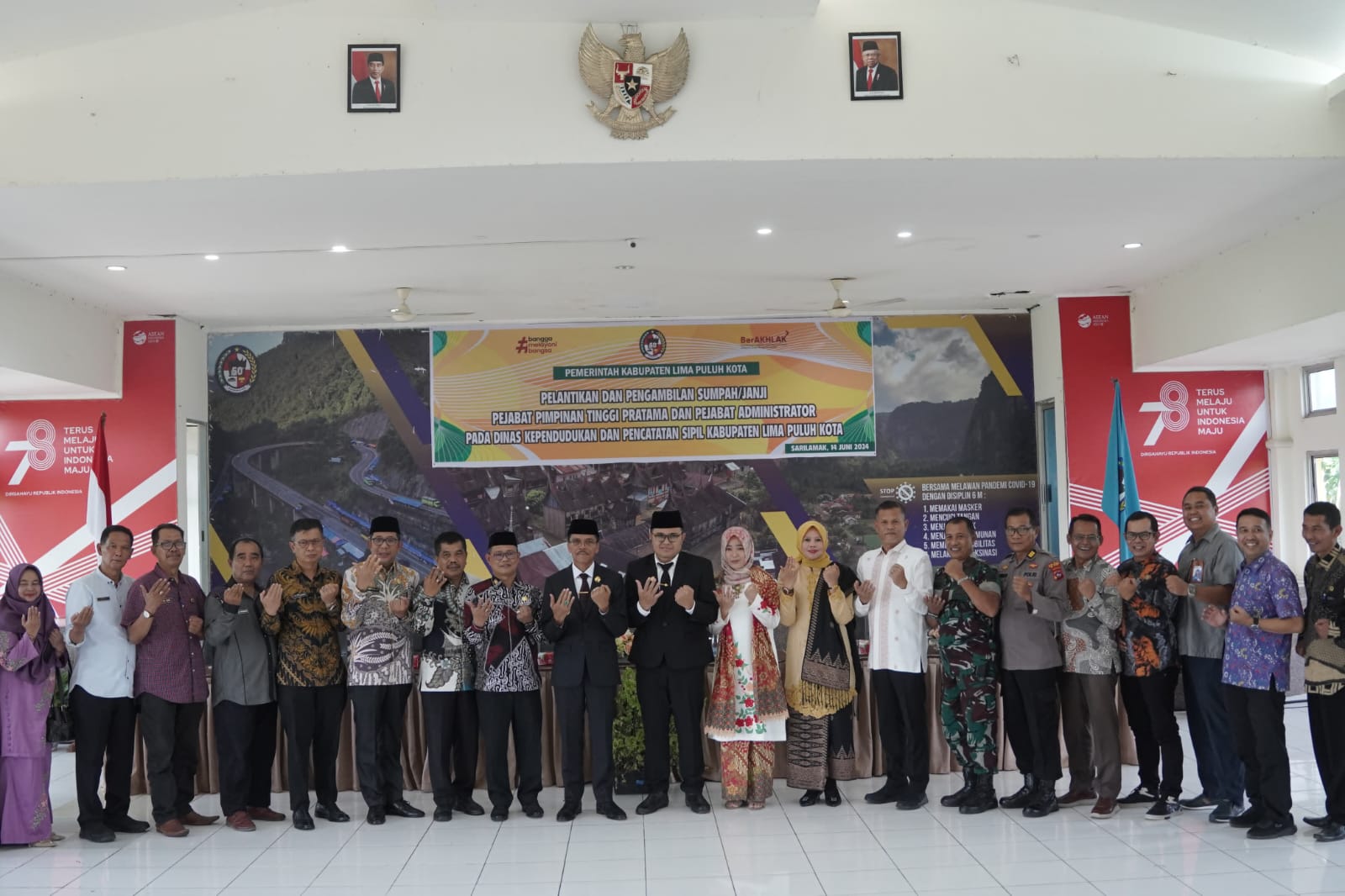 Limapuluh Kota, Denbagus.co-Hampir empat bulan menunggu rekomendasi Kementerian Dalam Negeri, posisi Kepala Dinas Kependudukan dan Catatan Sipil (Disdukcapil) Kabupaten Lima Puluh Kota akhirnya terisi. Bupati Safaruddin Dt.Bandaro Rajo melantik dan mengambil sumpah/janji jabatan Wira Dinanta untuk mengisi posisi Kadis Dukcapil, Jumat (14/06/2024).
