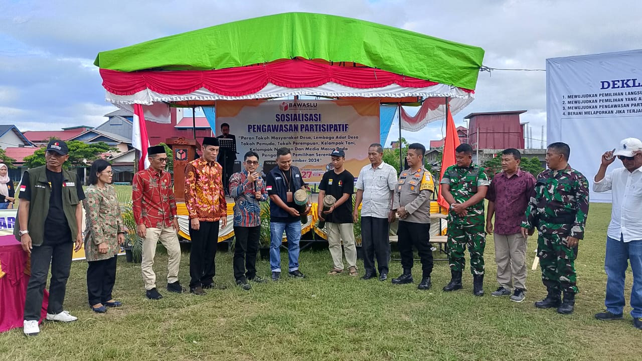 Mentawai, Denbagus.co– Dalam rangka meningkatkan partisipasi masyarakat dalam pengawasan Pemilu, Badan Pengawas Pemilihan Umum (Bawaslu) Kabupaten Kepulauan Mentawai menggelar kegiatan Sosialisasi Pengawasan Partisipatif dengan mengangkat tema “Peran Tokoh masyarakat Desa, Lembaga adat desa,Tokoh pemuda, Tokoh pemerempuan, Kelompok nelayan dan Media Masa pada pengawasan pemilihan serentak 2024” yang dilaksanakan di Lapangan Bola kaki Muara Siberut Selatan Mentawai, Minggu (26/10/2024).