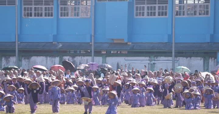 Kota Solok, Denbagus.co__Lebih kurang 1.700 Murid TK/RA dan PAUD serta Kelompok Bermain (KB) se-Kota Solok menggelar Tari Massal di Lapangan Merdeka Kota Solok, Rabu (21/05/25).