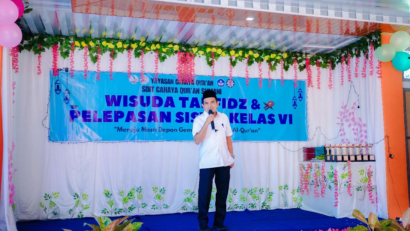 “Kami sangat bangga dengan keberadaan SDIT Cahaya Qur’an ini. Lulusan dari sekolah ini bukan hanya cerdas secara intelektual, tetapi juga kuat secara spiritual. Semoga semakin banyak anak-anak kita yang tumbuh menjadi penghafal Al-Qur’an dan membawa perubahan positif bagi masyarakat,” ujar Wabup.