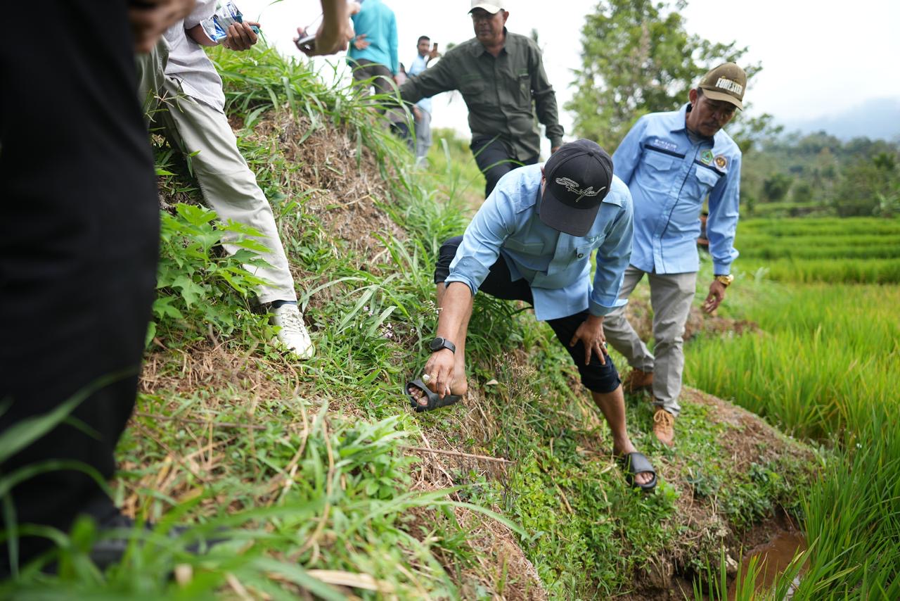 Bupati Solok bersama jajaran turun langsung ke lapangan meninjau kondisi sawah yang terdampak serangan hama tikus. Saat ini, hampir merata area persawahan di Kabupaten Solok, khususnya di Nagari Talang, mengalami penurunan hasil produksi akibat serangan hama tersebut.