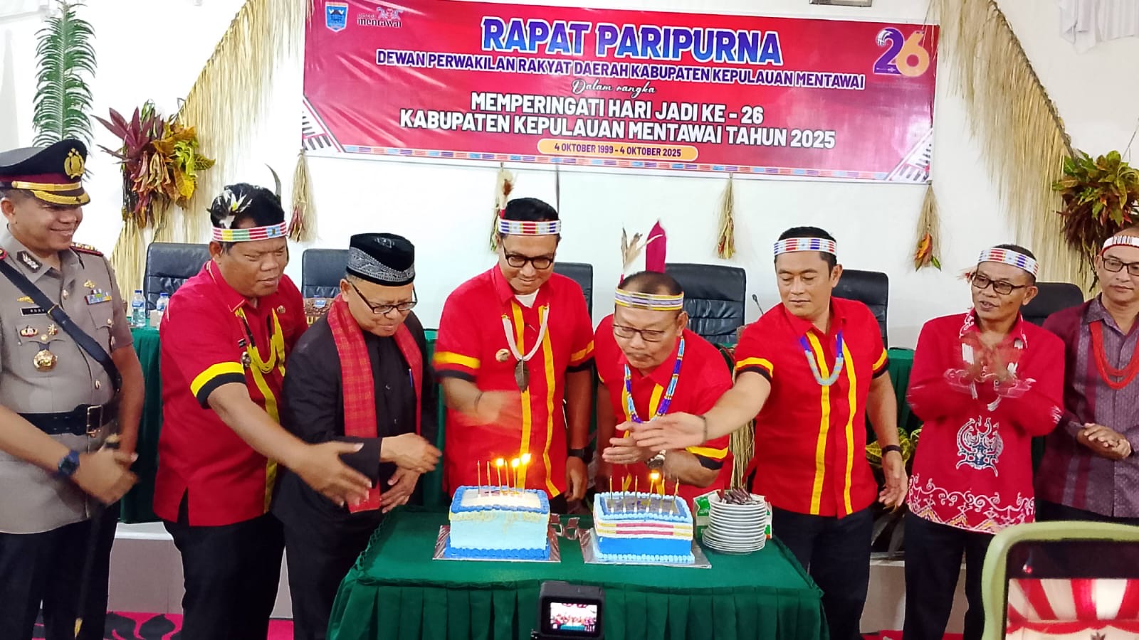 Mentawai, Denbagus.co-Dalam rangka memperingati Hari Jadi Kabupaten Kepulauan Mentawai ke-26, Bupati Kepulauan Mentawai Rinto Wardana Ikuti Rapat Paripurna DPRD yang dilaksanakan di Aula kantor DPRD Mentawai km4, Desa Tuapeijat, Kecamatan Sipora Utara, Sabtu (04/10/2025).