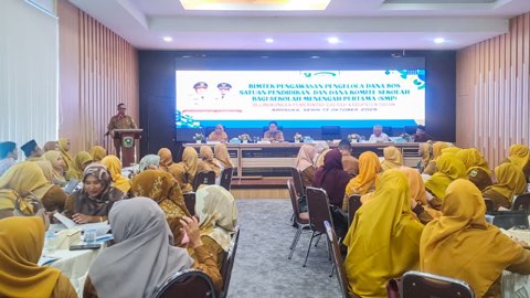 Kegiatan yang digelar di Ruang Pertemuan Gedung C Setda pada Senin (13/10/2025) ini, bertujuan untuk meningkatkan kapasitas dan pemahaman para Kepala Sekolah serta Bendahara Sekolah dalam mengelola dan mengawasi Dana BOS (Bantuan Operasional Sekolah) dan Dana Komite secara transparan, akuntabel, dan sesuai peraturan yang berlaku.