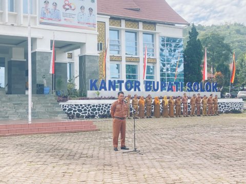 Kabupaten Solok, Denbagus.co-Pemerintah Kabupaten Solok melaksanakan apel pagi pada Senin (27/10/2025) di Halaman Kantor Bupati Solok Arosuka. Apel pagi ini dipimpin oleh Kepala DPMN Kab Solok Romi Hendrawan.