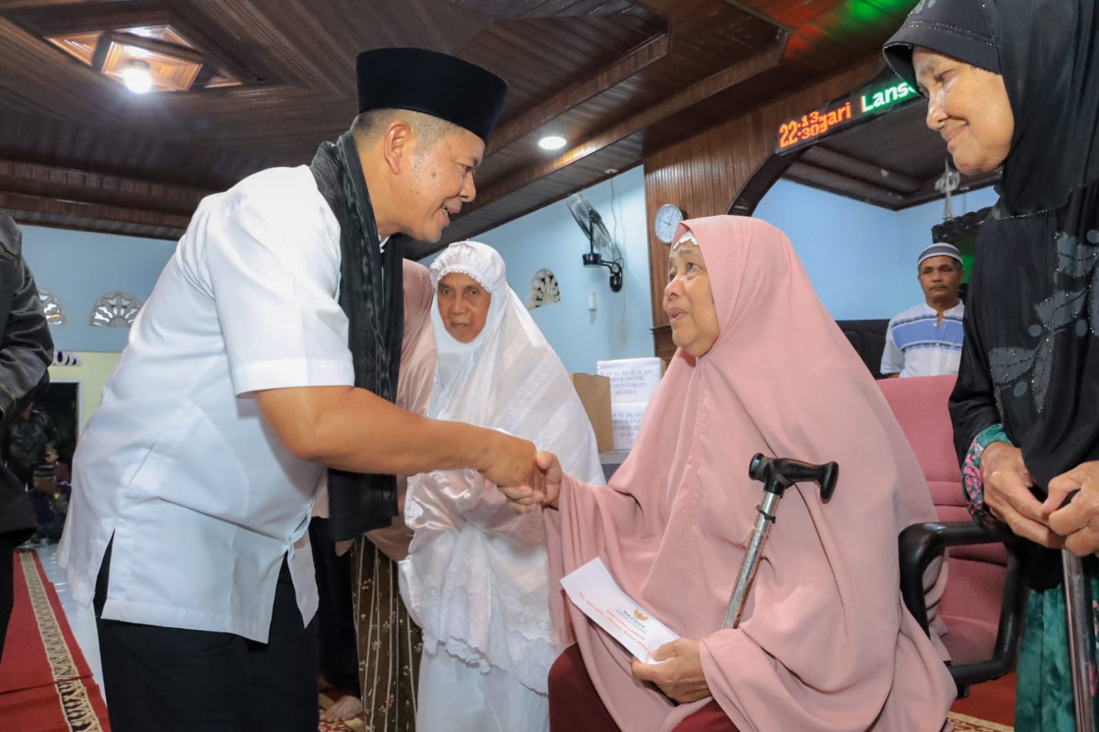 Sebagai bentuk dukungan nyata terhadap kegiatan keagamaan di tengah masyarakat, Bupati juga menyerahkan bantuan kepada pengurus Masjid Al Mukhlisin Koto Panjang. Bantuan tersebut diharapkan dapat dimanfaatkan untuk mendukung operasional dan peningkatan sarana ibadah masjid.